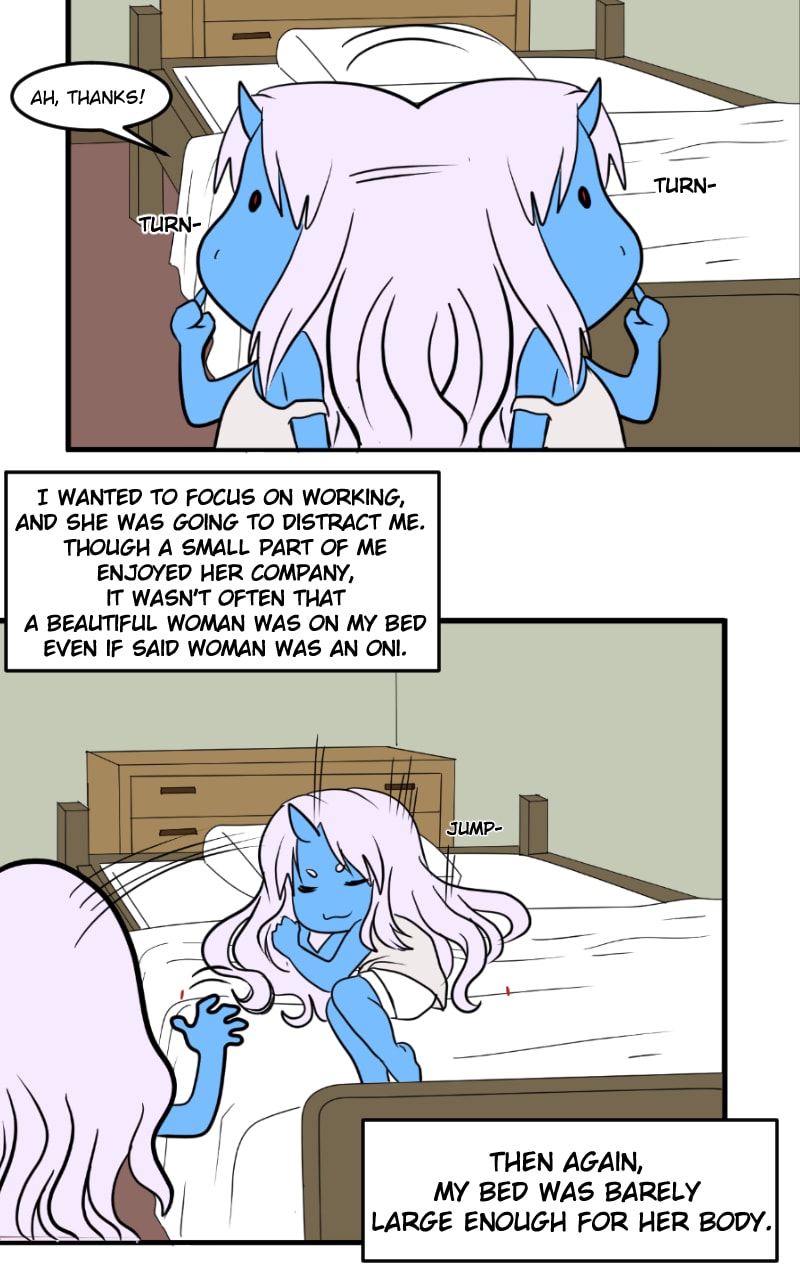 Sawyer couldn't help but wonder if he had made some mistake agreeing to be housemates with two Oni. One the irritable red-oni Gekido. The other, lazy to a fault blue-oni Tadiana, when Gekido's rough personality finally gets too much to bear for him, Tadiana gives him a little hint to help him out. Will her advice lead to a more pleasant time, or will it just complicate matters further?