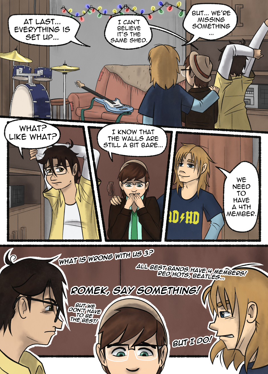 When an audition for garage band opens, they both apply hoping it will be the spark they are looking for.