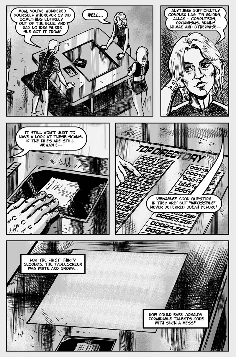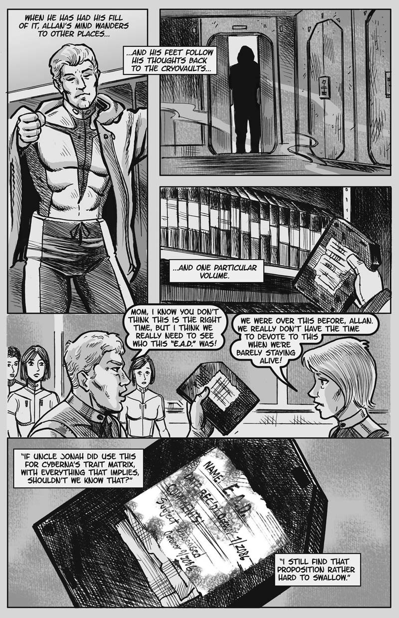 Noah ships out, and Cyberna's party ships in. The Neoatlanteans in the bunker, with time on their hands, discover some things about Cyberna 's development that most of them were never told.