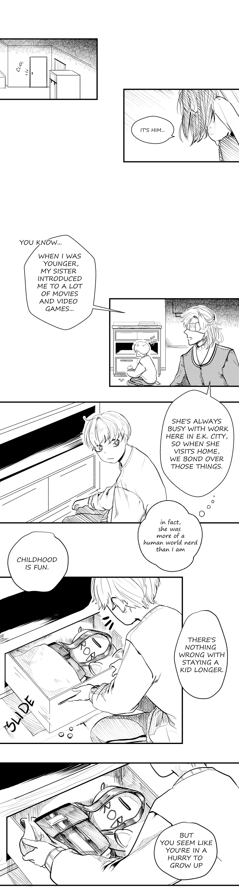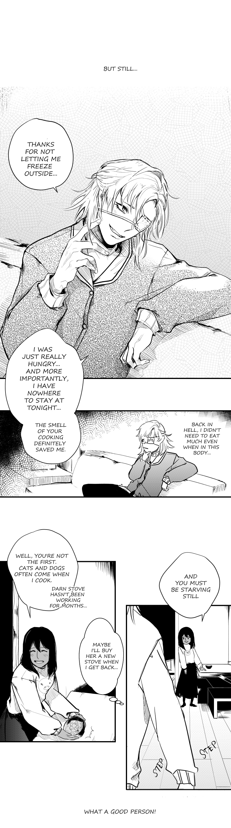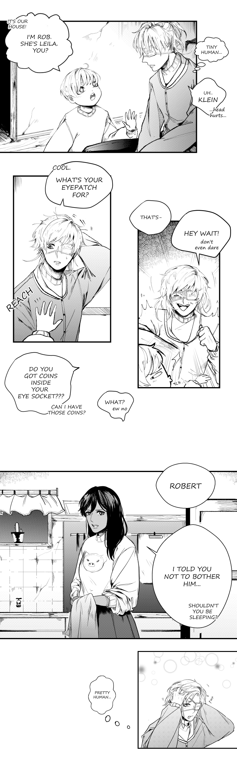 Yo that last panel tho. Anyways, congrats on getting this comic on staff picks! I'm glad I got to find this story, it's really interesting so far! It's kinda funny how the demon is so much more heavenly than the angel right now, but it's a pretty cool flip from the normal formula. Also, I absolutely love this art and Klein is highkey rocking the new half-up half-down hairstyle.