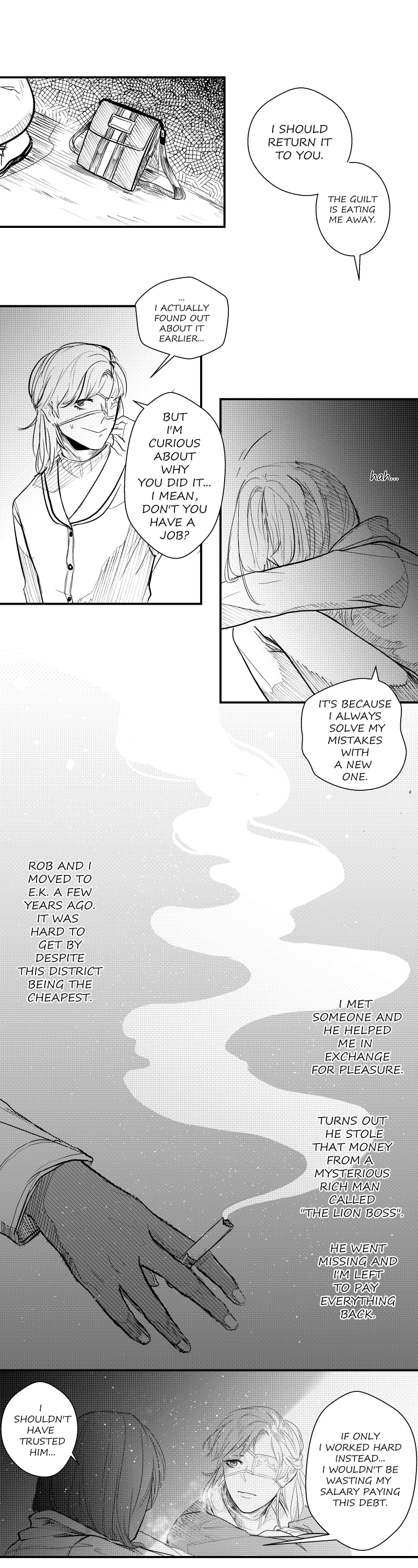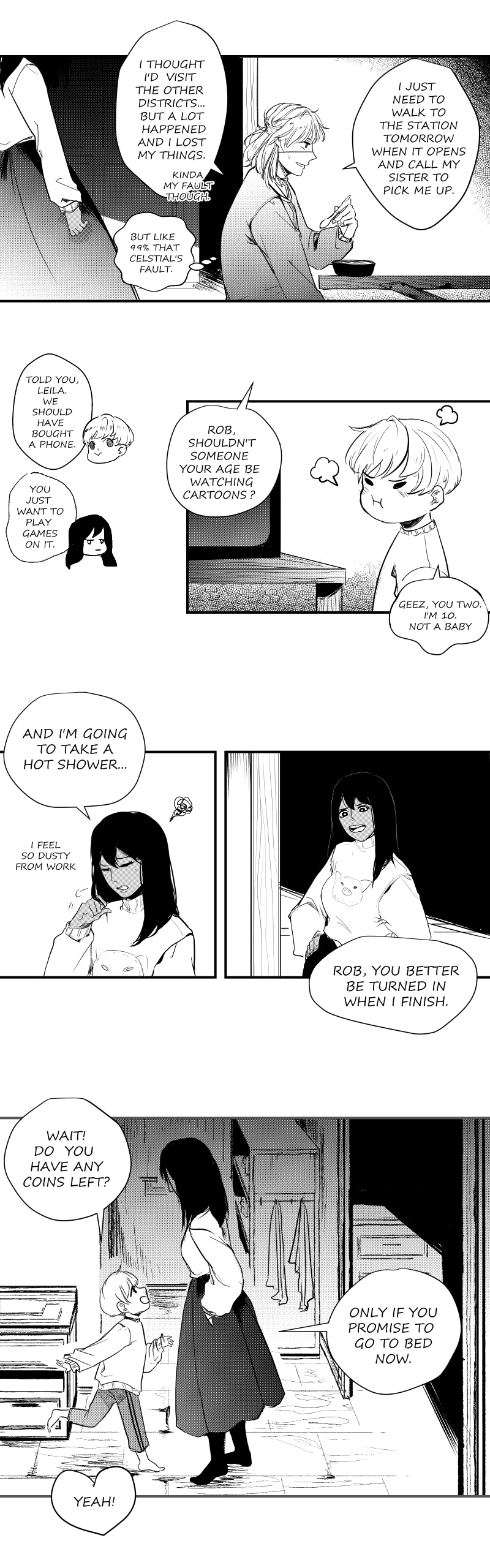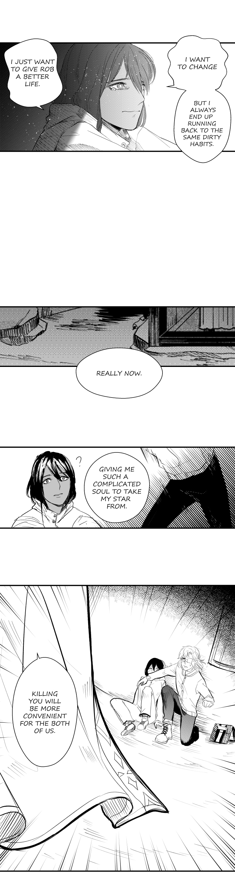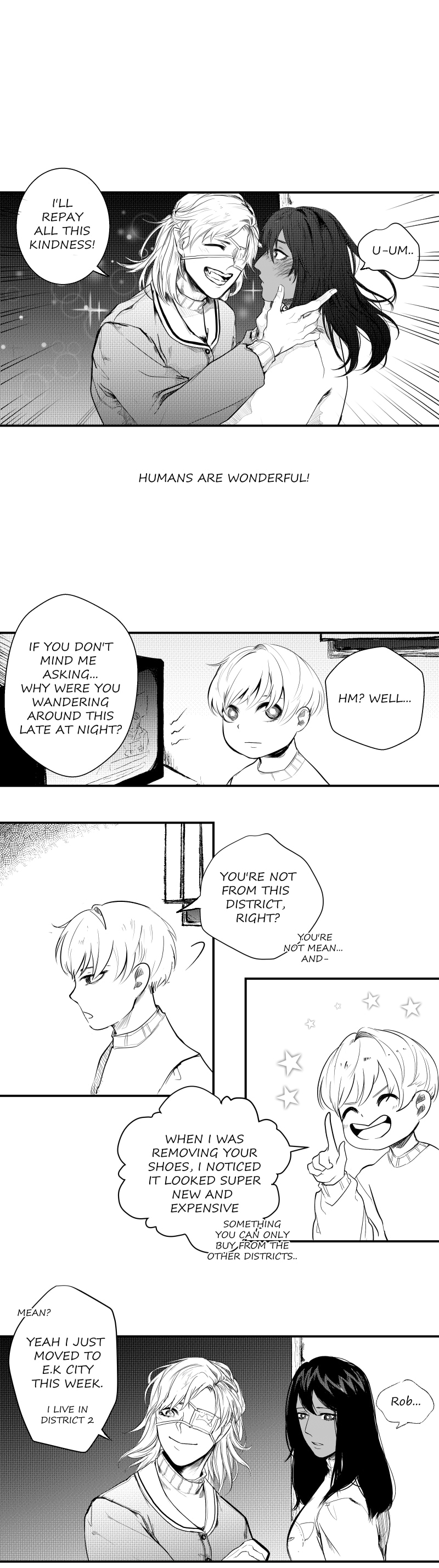 Yo that last panel tho. Anyways, congrats on getting this comic on staff picks! I'm glad I got to find this story, it's really interesting so far! It's kinda funny how the demon is so much more heavenly than the angel right now, but it's a pretty cool flip from the normal formula. Also, I absolutely love this art and Klein is highkey rocking the new half-up half-down hairstyle.