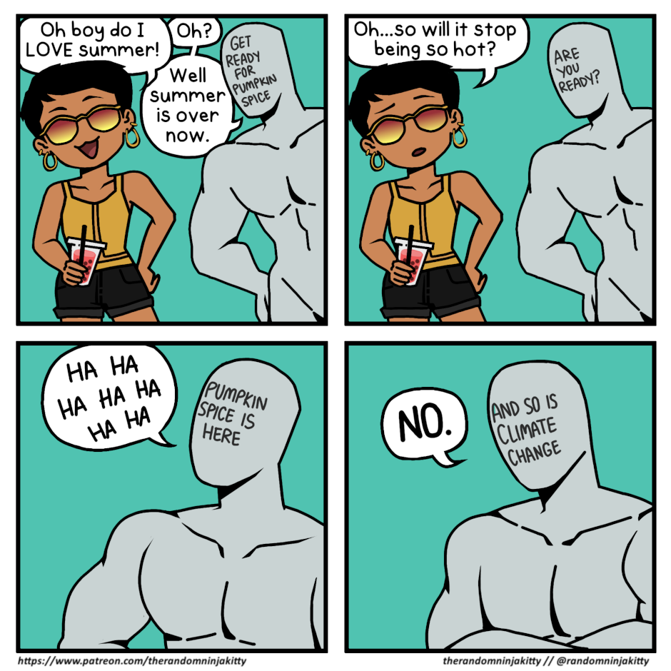 Summer is over. School is here. The planet is becoming uninhabitable. The government is violating human rights. Society is regressing. But for real, I hate pumpkin spice. I love fruity drinks and boba! What's your favorite drink and do you like summer or fall better?
