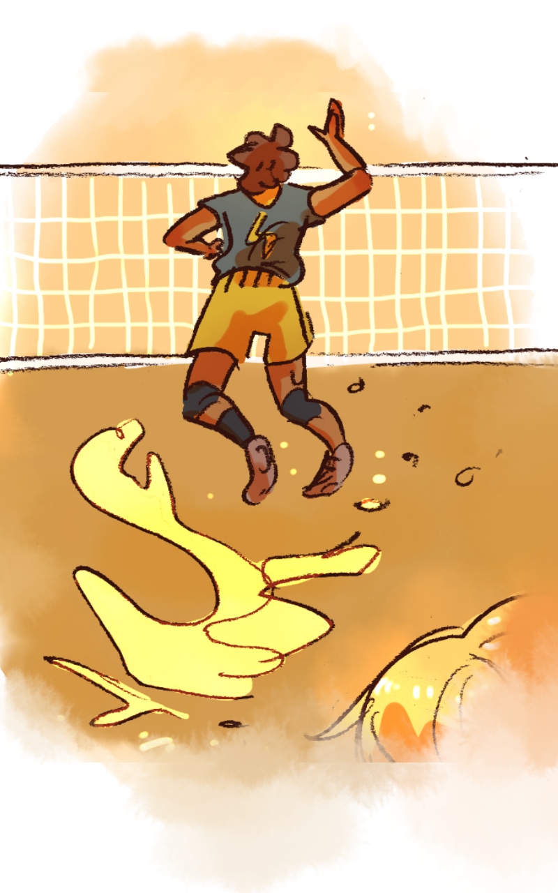 Aurel wanted to make a carrier in volleyball, but due to an ankle injury he won't be able to play anymore and makes his team loose an important game.
