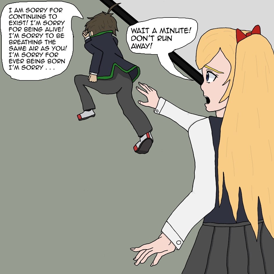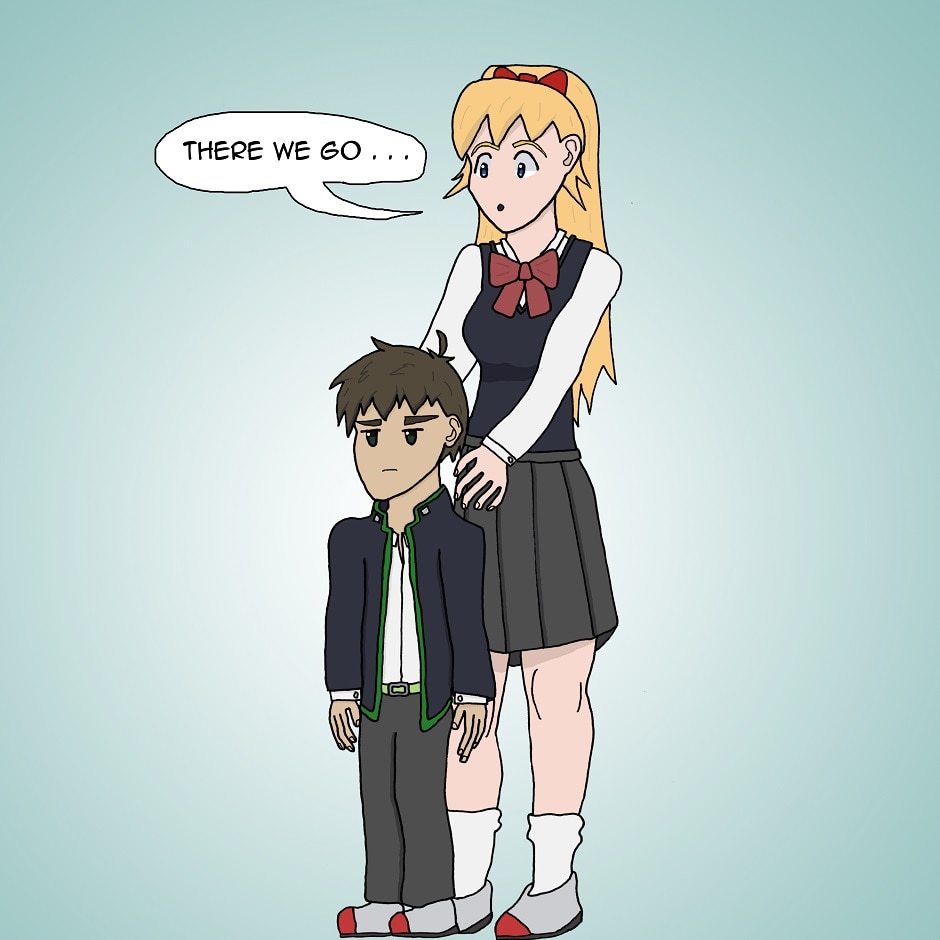 Ken has had a crush on Lisa since his first year of high school, but she is a 7' tall athletic prodigy while he is a 5' tall unpopular guy. Will the distance between these two ever shorten?