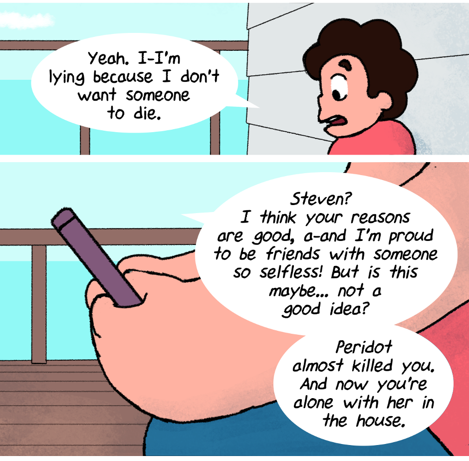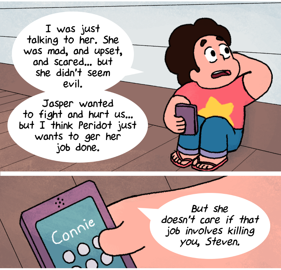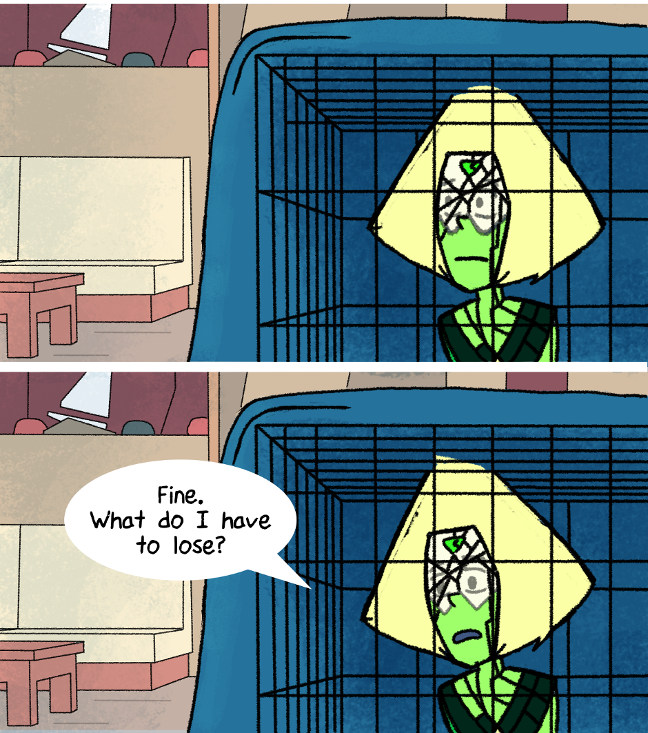 Note: This story was written in 2015, in the middle of Steven Universe Season 2. During this phase, Peridot was still a rogue enemy gem running around causing trouble, and we knew next to nothing about Homeworld. And so this story goes in a slightly different direction than canon.