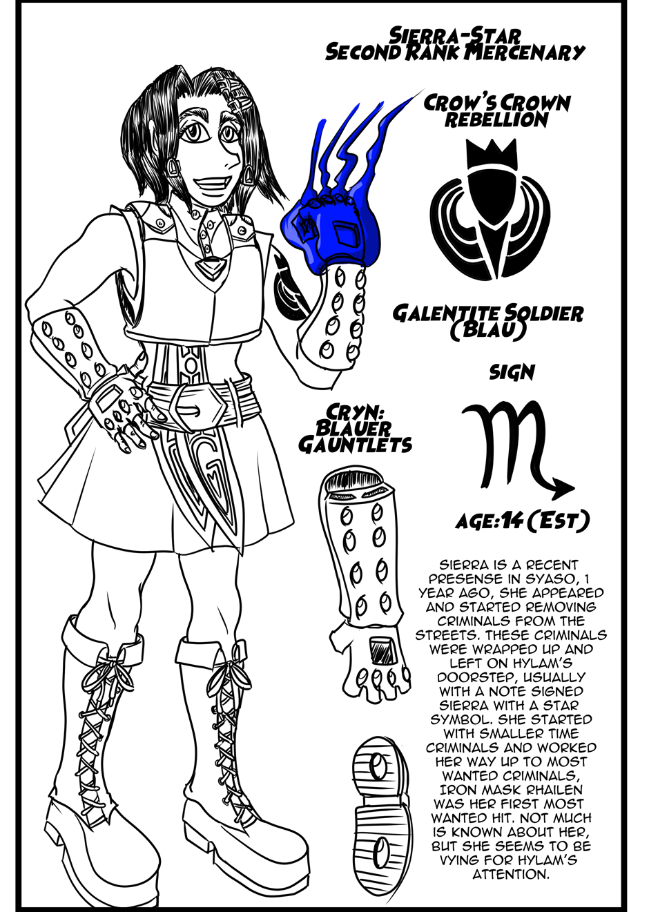 In the city of Syaso, a city made “perfect” by nobility, Lord Hylam Langley is one of the King’s most elite soldiers who is seeking to rid the streets of violence and disorder, notoriously incorruptible in his pursuits for justice, yet carrying out his duties benevolence; however, an encounter with a strange young girl, Sierra-star, a rebel and vigilante, throws off Hylam’s sense of order. As a woman who can blend in with the miscreants of the underworld, she capable of cleaning up the streets better than Hylam ever could, which wouldn’t be an issue if not for her status as a rebel, and it is because of her status that Hylam must capture Sierra in order to keep the King’s justice. As she catches criminals and all but dropped them on Hylam’s doorstep, allowing him to take all the credit, she is proving to be both helpful and entirely mysterious, never revealing herself to him which means that she is constantly eluding capture. However, while Hylam is making the search and arrest of Sierra his number one priority, he begins to realize that she is leading him to a government conspiracy: someone from the Divine Council has entered the underworld and started their own criminal enterprise, and Hylam needs to quickly find out who and why before the kingdom becomes completely controlled by the shadows.