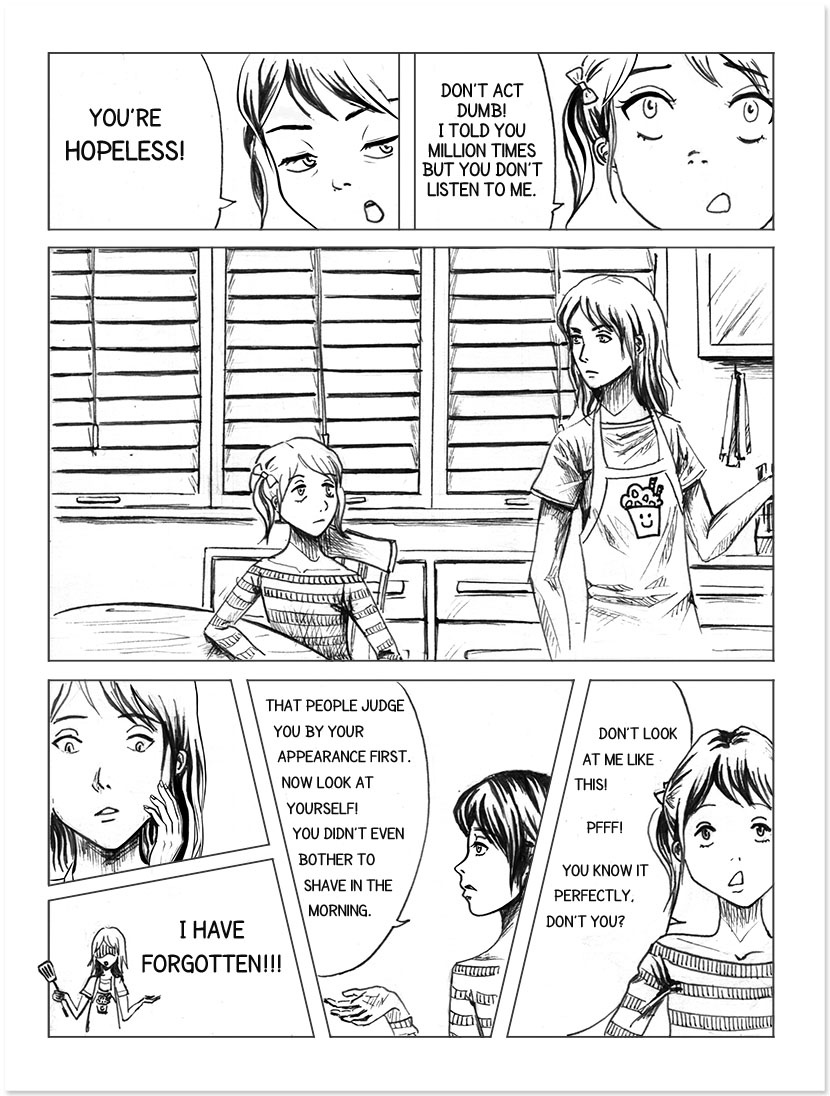 Love at first sight? Or just a tricky combination? Trivia: Apron design, that Angie is wearing in this chapter, is inspired by my friend Mary and her cute food drawings.