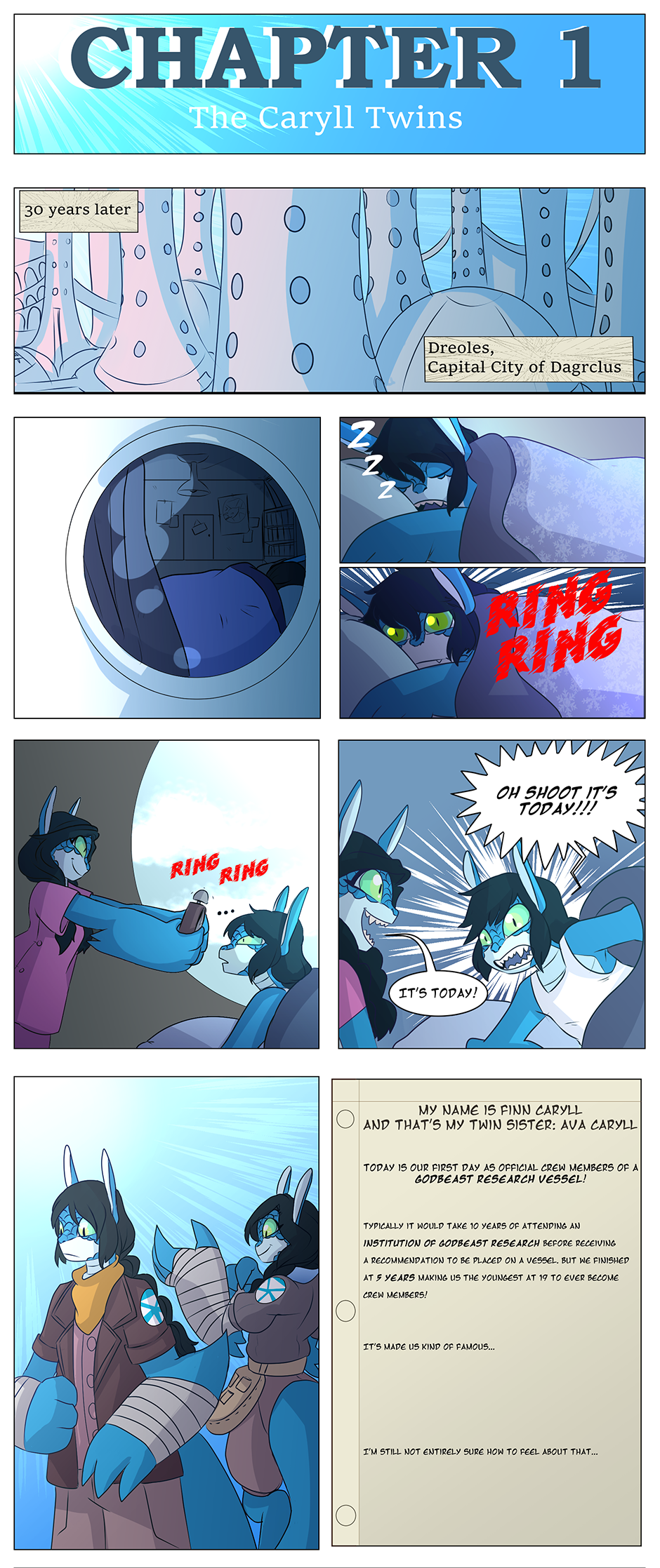 The morning of Finn and Ava's first day as Godbeast Research Vessel Crew Members!