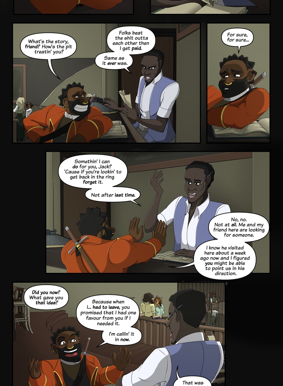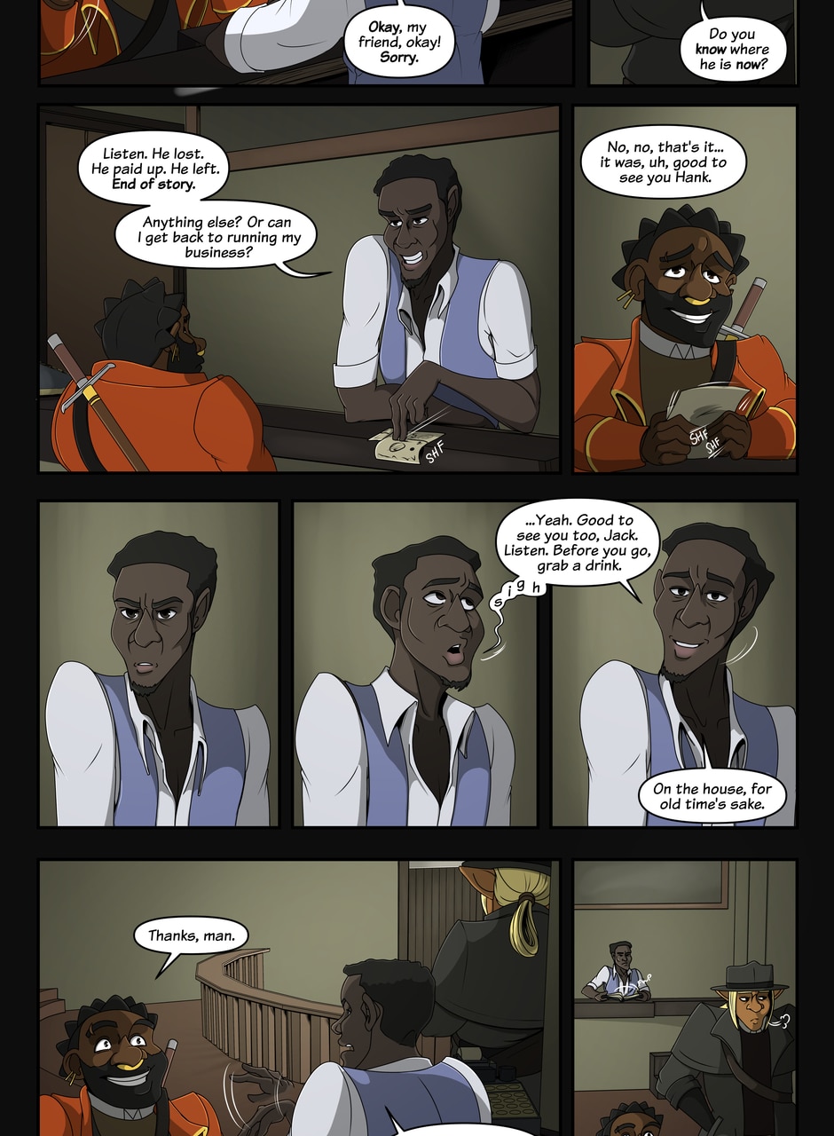 A fantasy-noir about trauma and recovery. The Caskhouse Casefiles follows Bowman, a veteran of a twenty-year war turned private investigator still haunted by his past as he takes on the criminals of Caskhouse, the meanest district in a dirty town. And with gangsters in every corner, assassins on the loose and a very literal femme fatale with her own agenda breathing down his neck it's not going to be easy... Updates Tuesdays and Thursdays.