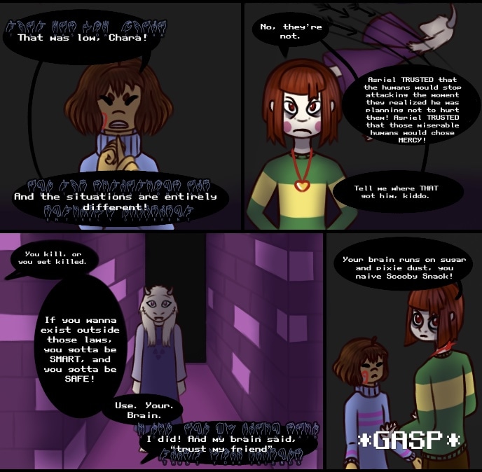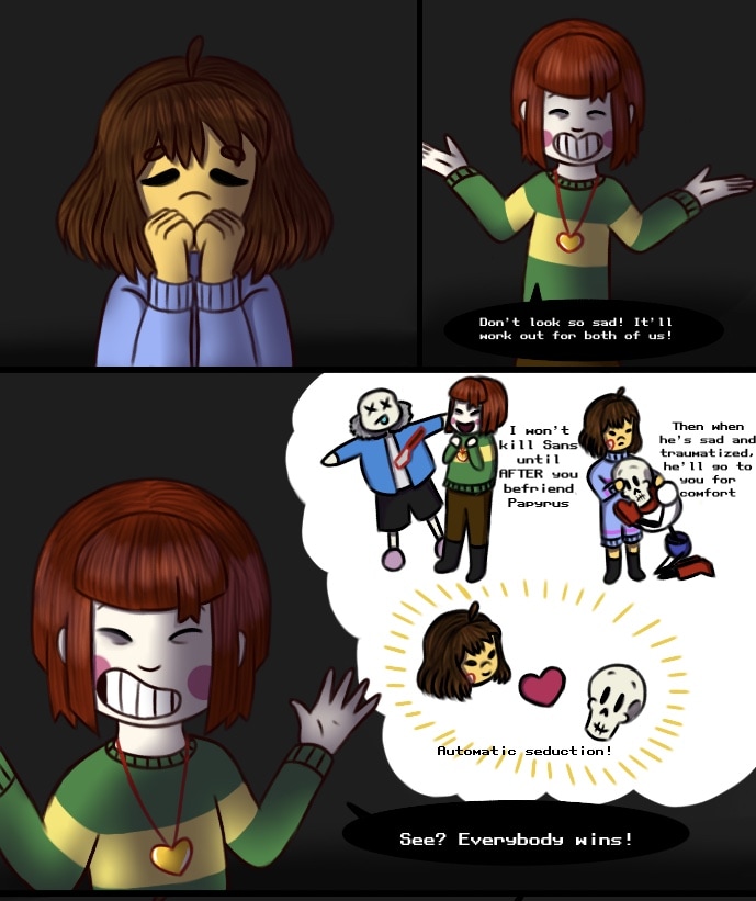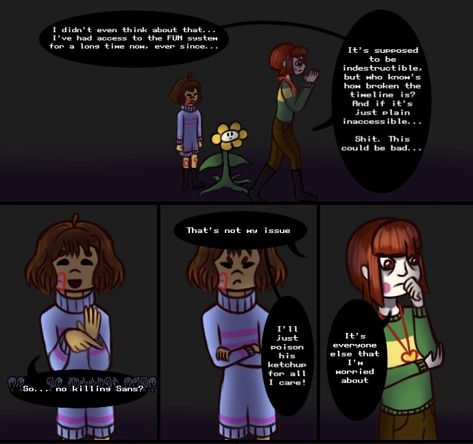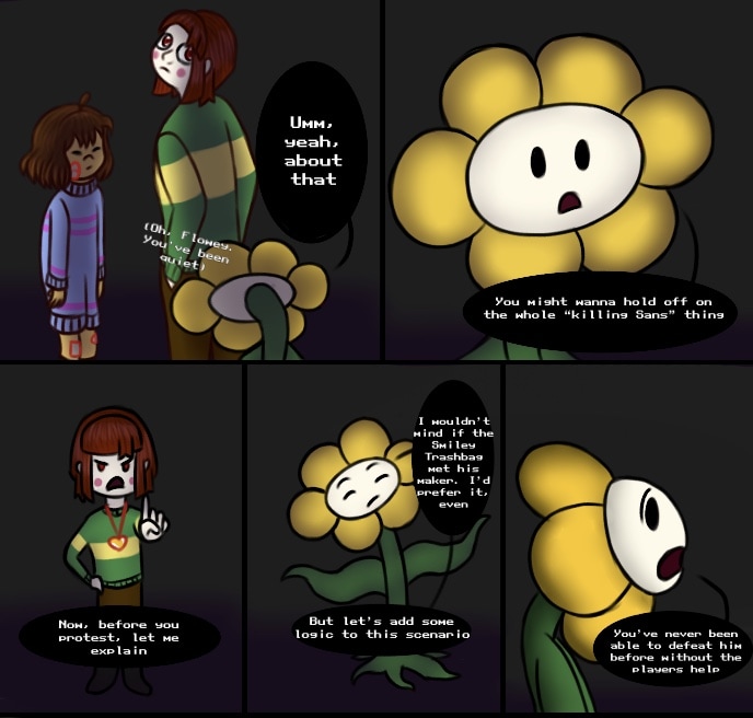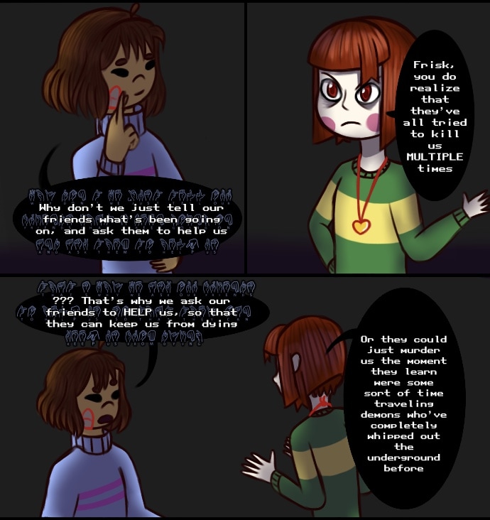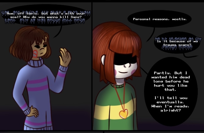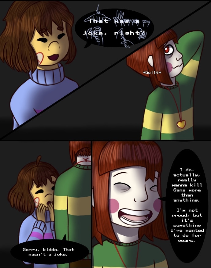 Chara wants to kill Sans. They care about Frisk too much to simply consider her a road block to their goal, but they are not going to give up on what they want easily. And with dozens of unforeseen variables thrown in both Chara and Frisk ways, the two kids find that achieving happiness will not be easy, despite their newfound freedom.