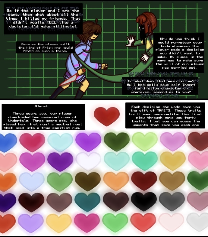 Due to a broken computer, Frisk and Chara are finally free to shape the world of Undertale the way they want to. Both plan to free the Monsters from their prison and finally achieve a happy ending for everyone, but both children have their own goals in mind. While all Frisk wants is a chance to date her crush, Chara's goal is a lot more sinister.