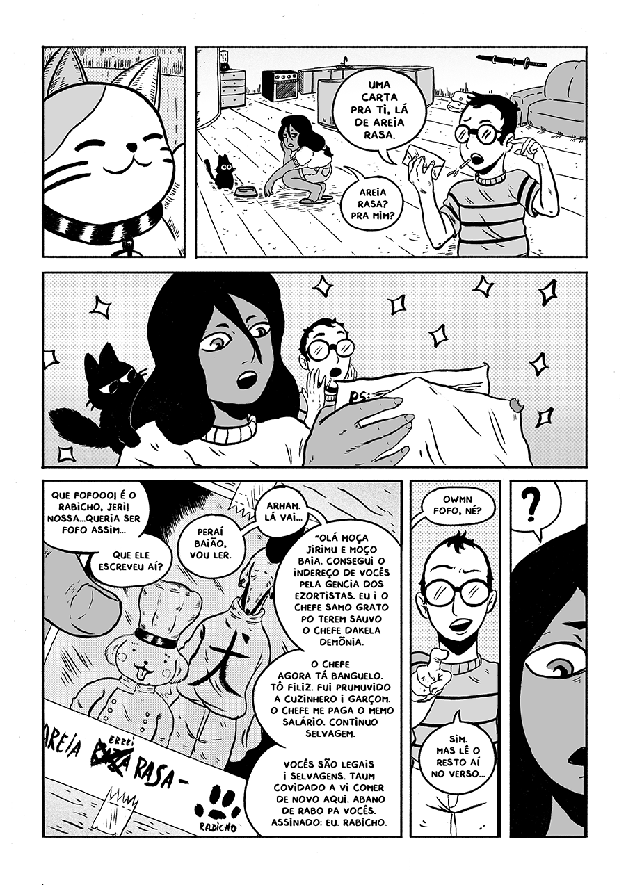 Numa fusão de aperreio e liseira, Jerimum uniu o não tão útil ao desagradável. Virou uma exorcista assalariada e agora ganha a vida expulsando a capirotagem nos quatro cantos do mundo. Junto com Baião, seu parceiro abestaiado, ela vai descer o sarrafo em tudo que é caramunhão para pagar as contas (e a merenda, se sobrar dinheiro).