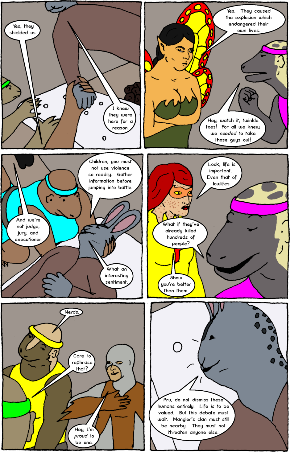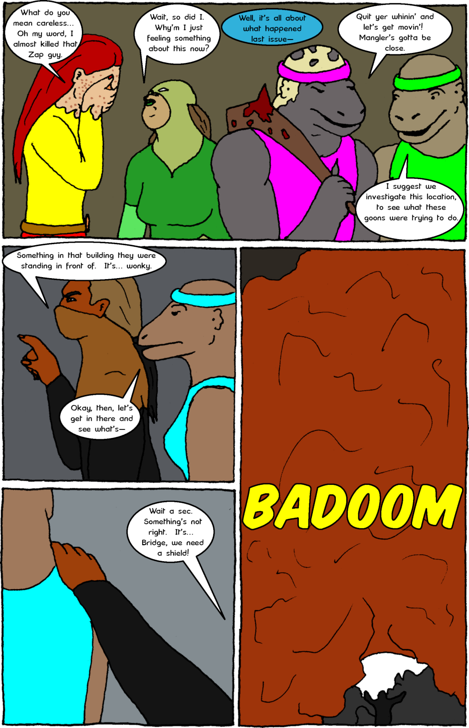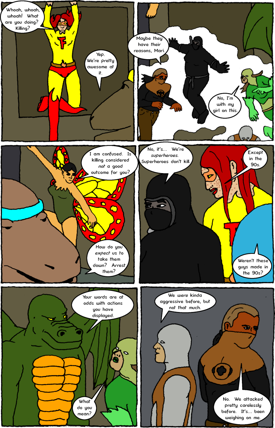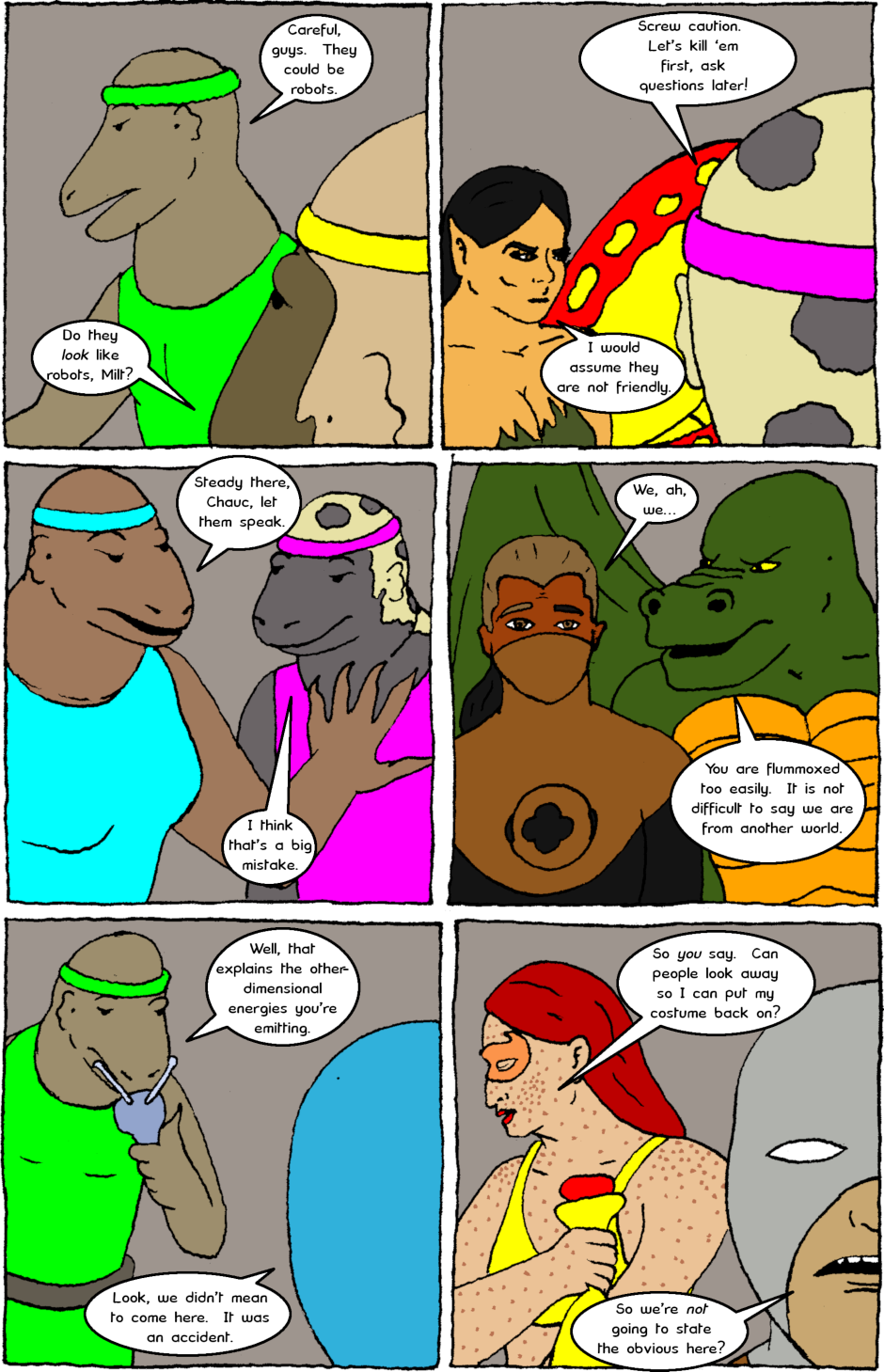 The Almighty Protectors team up with a team of sauromalus soldiers and issues come to light about both groups' relationship with violence.