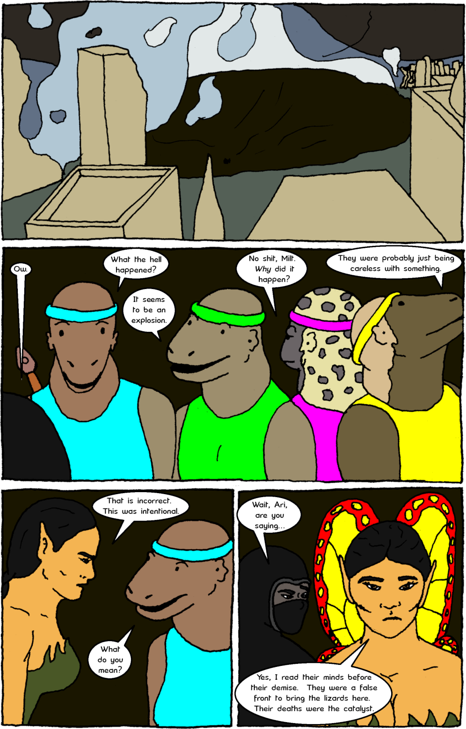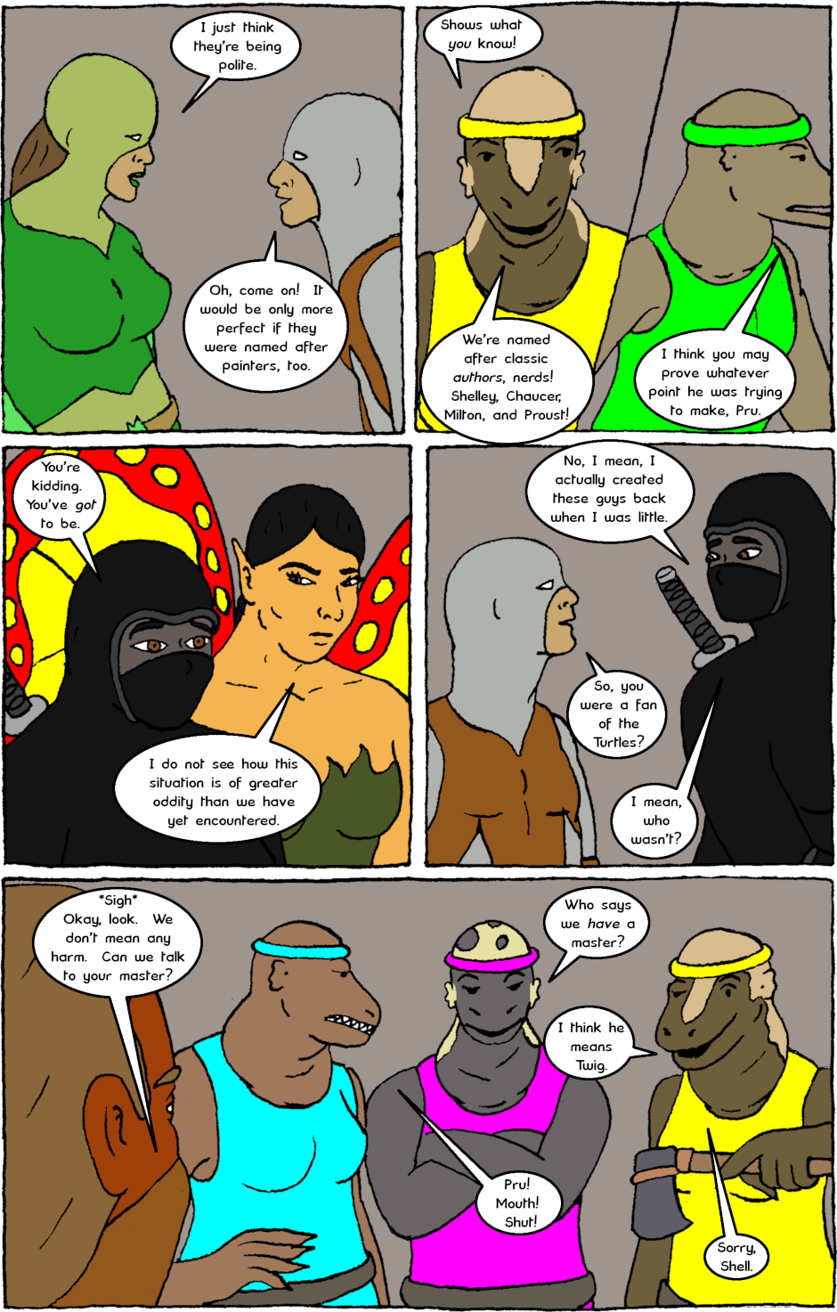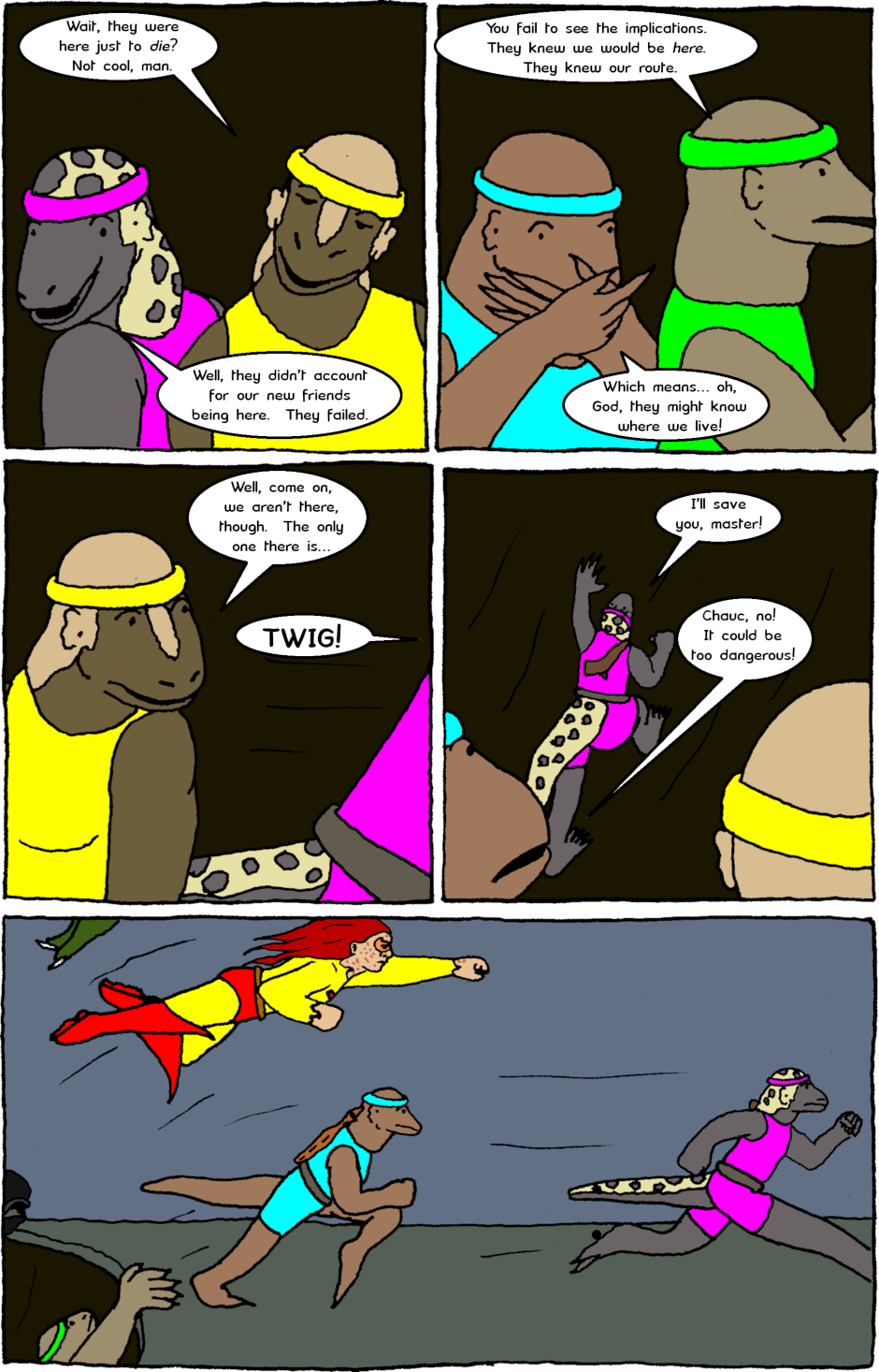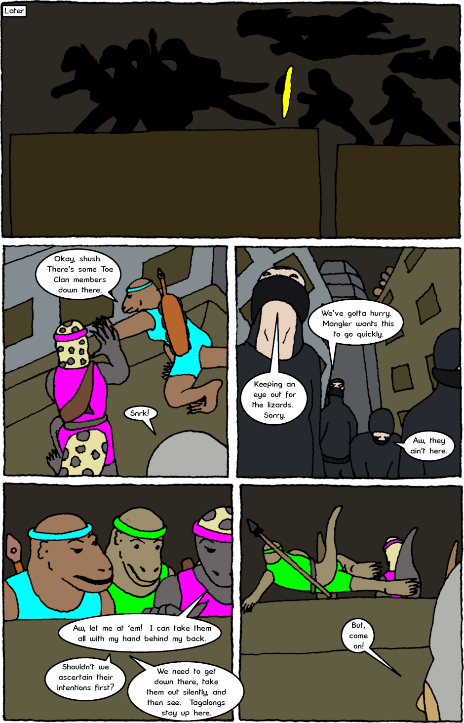 The Almighty Protectors team up with a team of sauromalus soldiers and issues come to light about both groups' relationship with violence.