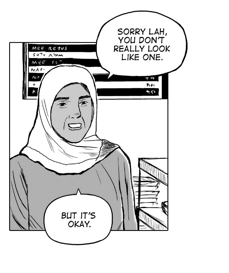 Translation: Mak cik agak terperanjat dengan soalan kamu lah. ~ (Malay) Auntie here was a bit taken aback by that question.