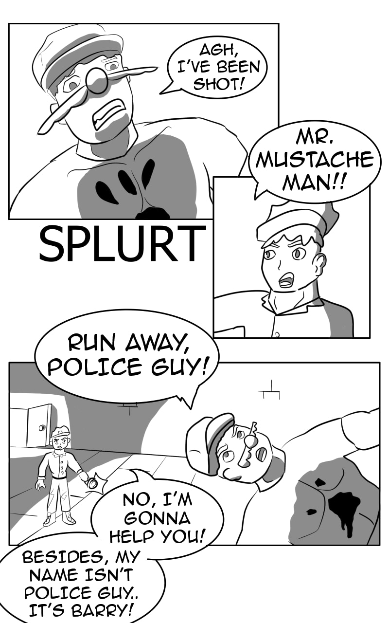 When a giant, smiling meteor crashes on Earth to reveal a destructive alien race, one cop strives to arrest these aliens, but realizes that his great grandpa was connected to them somehow! And for some reason, a mysterious mustached figure helps his journey!