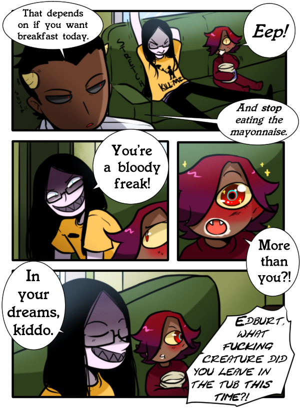 This scenario takes place about 60 years after GE does (but I made nothing "futuristic" because fuck timeline accuracy) Bathin and Edburt attempt to settle down and live out human lives as best as they can with their "son" Jello.