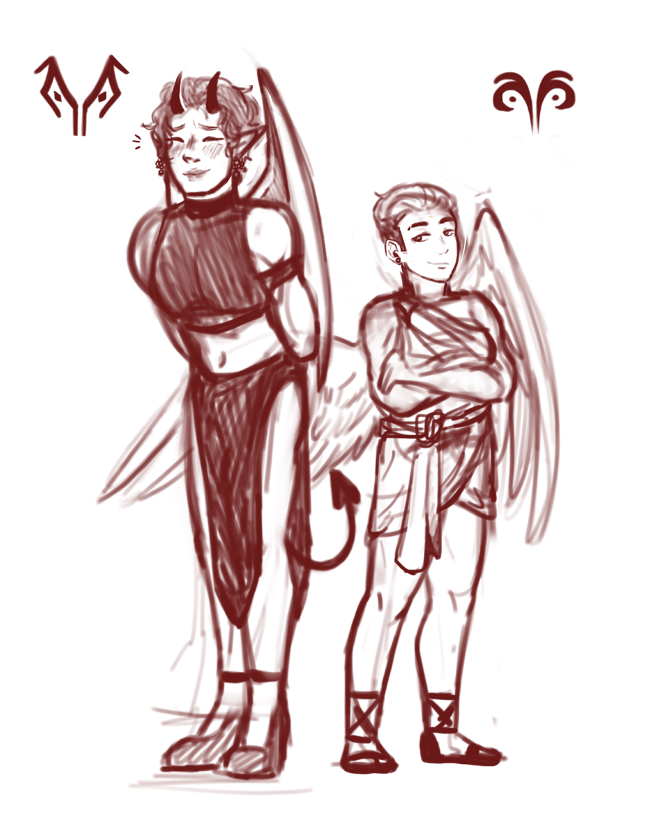 8. Ahh...an idea that I came to me as quickly as it went away of a femme demon dude and butch angel chick. Hijinks ensue.