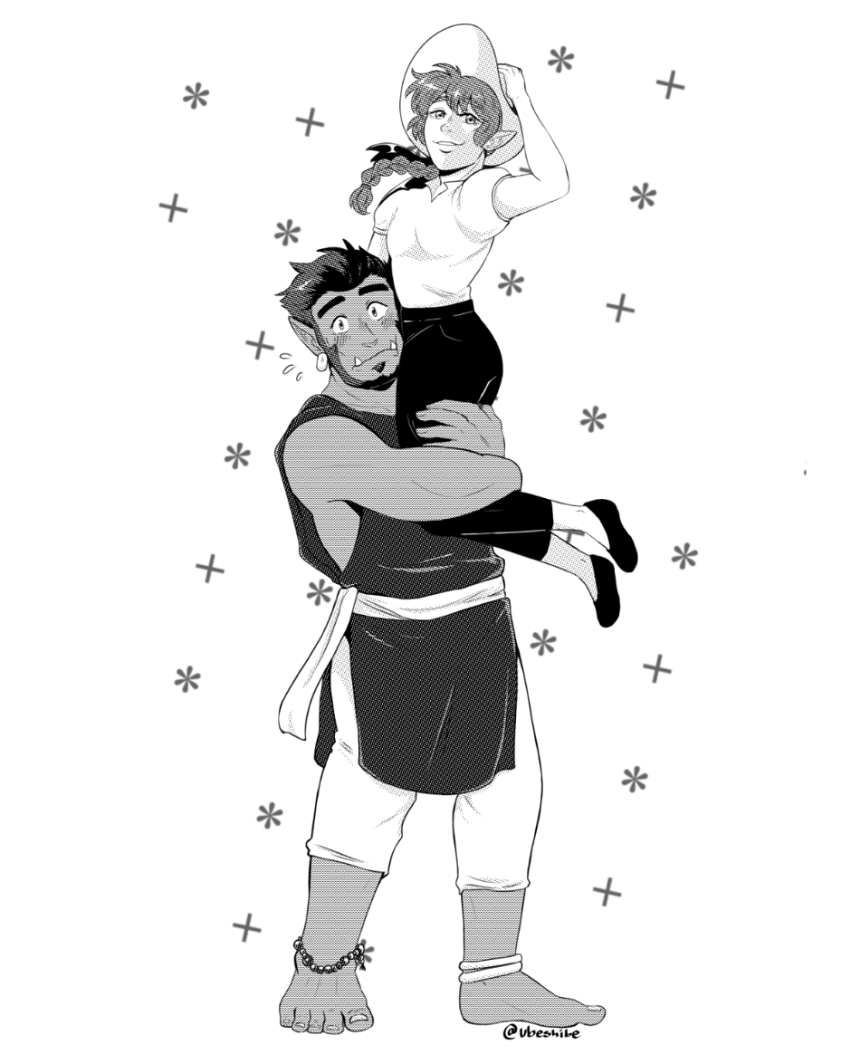 7. The one being carried is my old dnd character, Parsley! The other good boy is Arlo! Are they boyfriends? who's to say (I am but even I dont know)