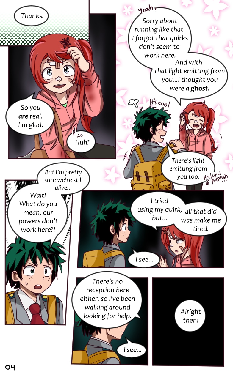 Amid his everyday hero-in-training world, Midoriya Izuku suddenly finds himself trapped in a strange and dark universe where he meets Sachiko; a bashful but bright red-head girl who is planning to transfer to the U.A. Academy soon.