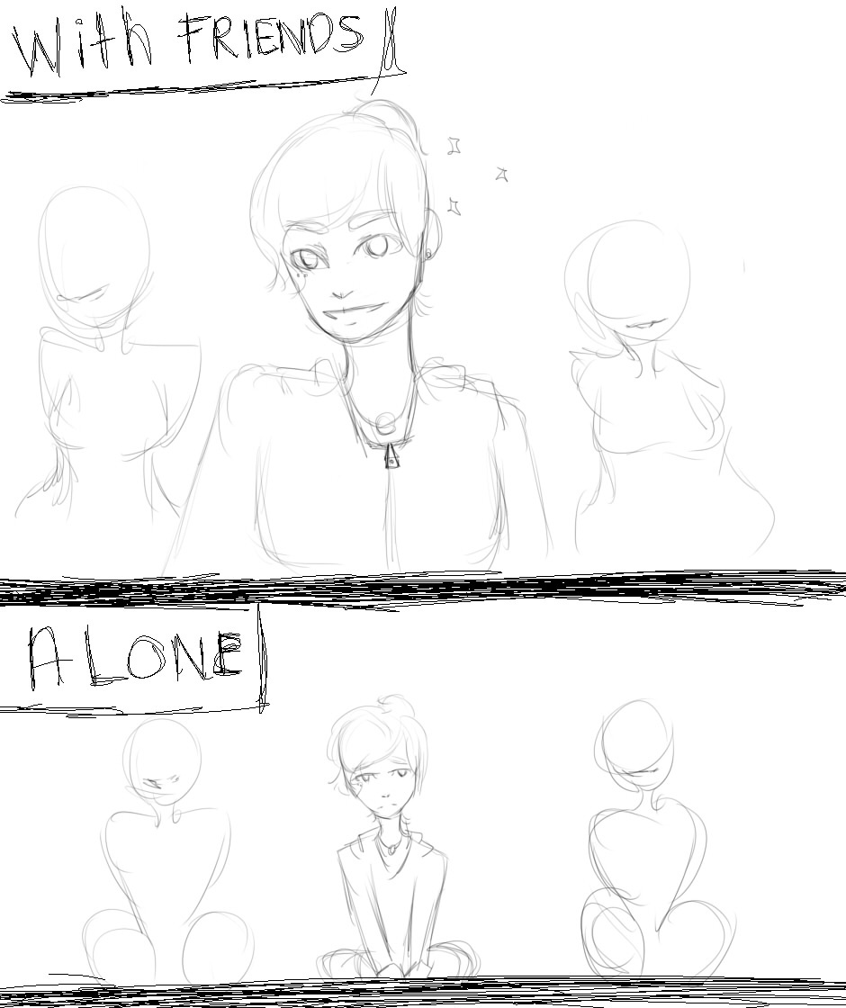 What I feel like when I'm with my friends vs when I'm alone, Like during social situations when my friends/relative isn't there and when they are. ^^