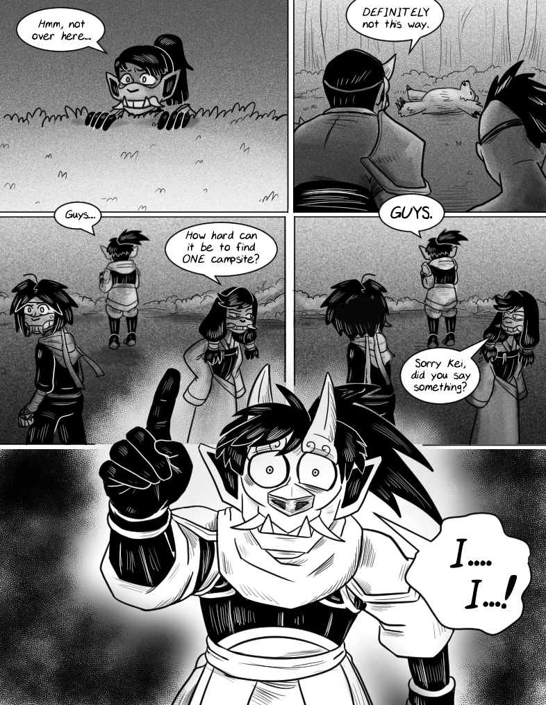 The targeted campsite has been foun- wait!! Can that really be the campsite?! Find out more when Oni x Fox returns for Chapter 29! Stay tuned for its release! Thanks for reading! :D