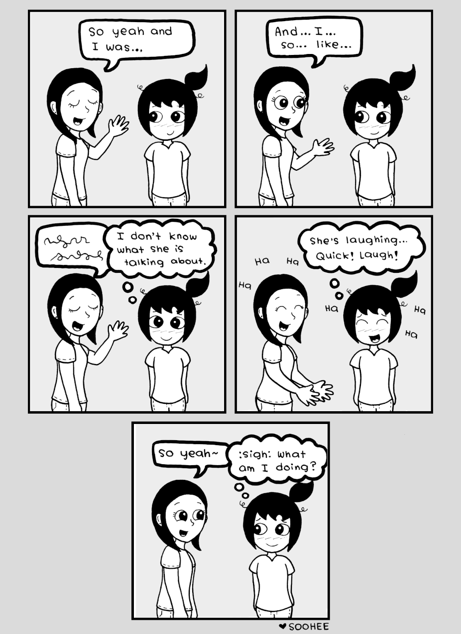 Sometimes I miss what people say, but I'm too embarrassed to admit it....so I just fake it... follow me on instagram: @sarahmalvano_art