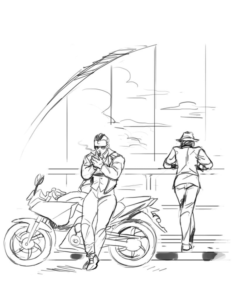 I get images kicking around in my head and I usually don't have time to properly draw them out. I think they work better as sketches anyway, so there may be a random sketch whenever I feel like it.