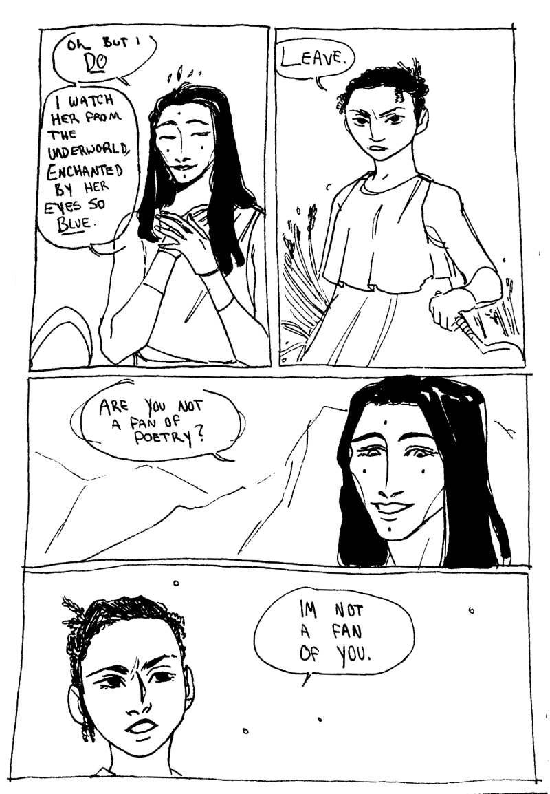Stuck between a cold god and the death that waits outside of the palace gates, Persephone navigates a complicated relationship with Hades, Minthe, and her memories of the sun.