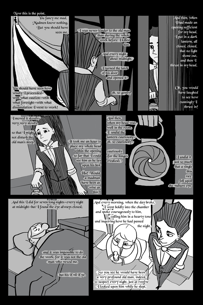 I focused on capturing the narrator’s punishment in the story: insanity.