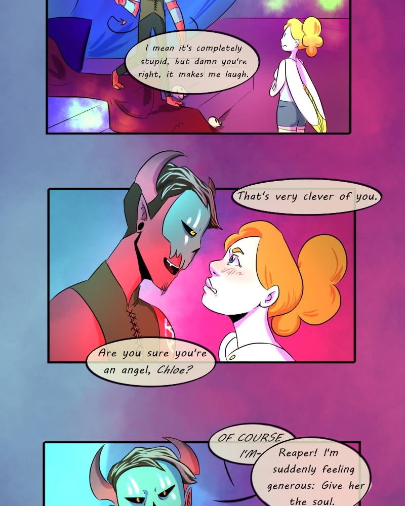 Chloe Heavenwood wants nothing more than to become a delivery angel like her mother, but her world turns upside down when she asks a disagreeable reaper for help. Soon she is thrown into the affairs of Hell, where she makes an unlikely group of friends and begins to question everything she has learned about Heaven. To make matters worse, it seems she has won the attention of Hell's fiery Princess...