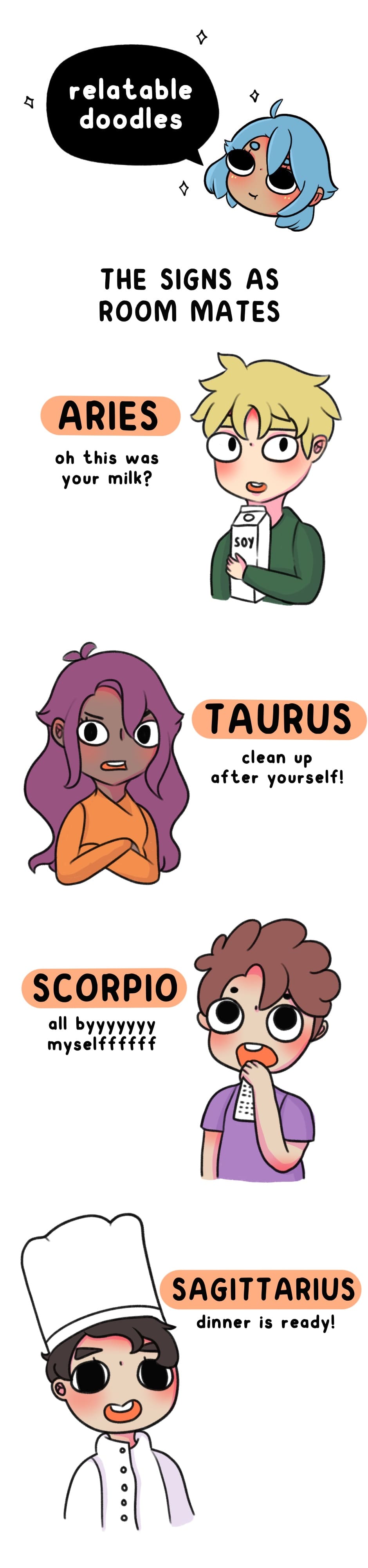 The Zodiac Signs as room mates