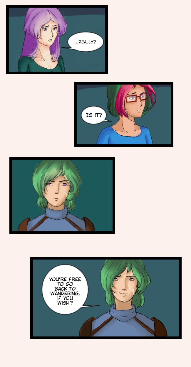 Lifelong friends Aerin and Keisuke are yanked suddenly into another world, where a powerful sorceress has seized all magic for herself and established herself as supreme empress of the world. Somehow, the magic meant to instill in only one of them during summoning gets split between both, instead. That might be for the best, though, because it'll take more than one person to pull off this world-sized rescue mission. Updates at least once a month.
