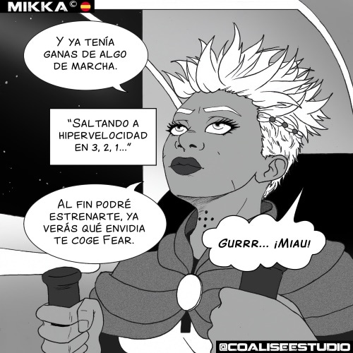 Mikka, mercenaria espacial en el Sistema Lum. Se gana la vida a través de encargos de mala muerte para hacerse un hueco como soldado a sueldo y cazarecompensas. No busca conflictos, solo comprarse una nave espacial, tener una modesta tripulación y vivir libre y sin ataduras.