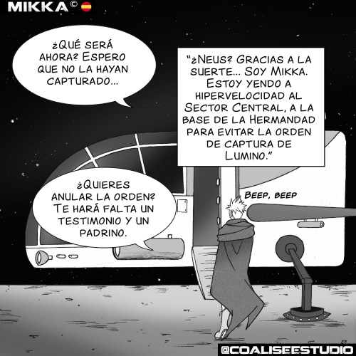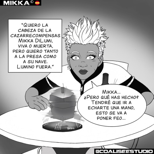 Neus está tranquilamente en una cantina cuando recibe un mensaje por la red de cazarecompensas del sector. Es un mensaje de Lumino pidiendo la cabeza de Mikka. Neus sale corriendo a socorrer a su amiga mercenaria de un destino funesto.