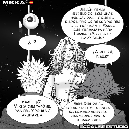 Mikka, mercenaria espacial en el Sistema Lum. Se gana la vida a través de encargos de mala muerte para hacerse un hueco como soldado a sueldo y cazarecompensas. No busca conflictos, solo comprarse una nave espacial, tener una modesta tripulación y vivir libre y sin ataduras.