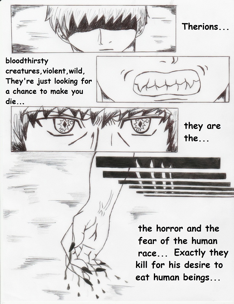 They were the evolution of science and man, created with human and animal DNA these humanoid beings had similarities with humans, possessed own their own mind, were considered perfect, but there was a genetic mistake and it got out of control. Therions started to created their own independent race and consume human flesh to survive due to their animal DNA, from that day on the humans and the Therions were enemies.
