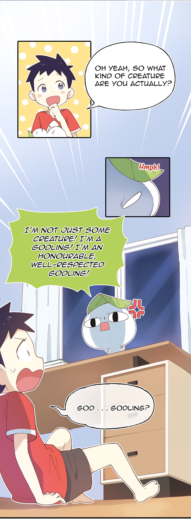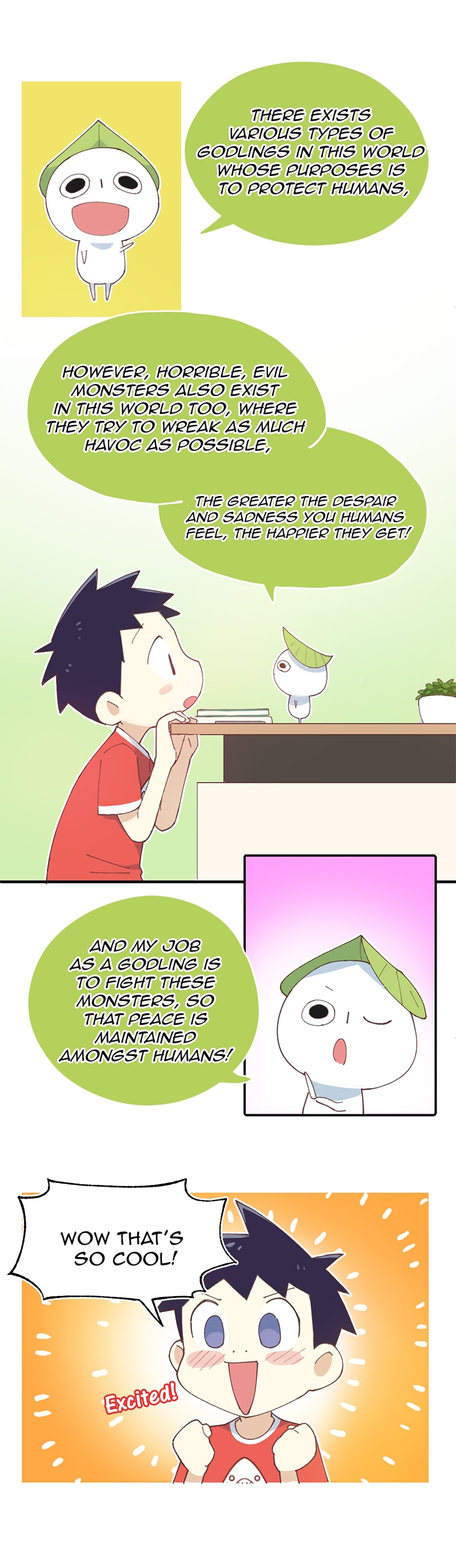 This is a story about a little boy Zach and a little godling. The little godling has been assigned to guard Zach due to his poor performance. Little godling has capture the monsters in order to receive his food. But the rule is that he cannot let Zach know of his existence. However, he breaks the rule...