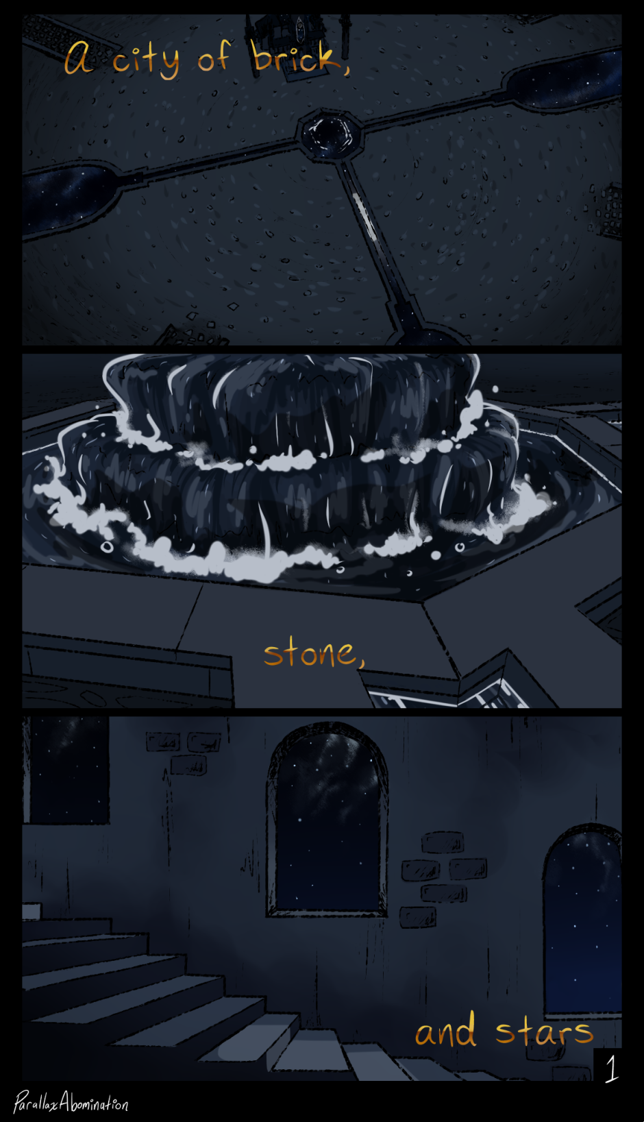 and I'd be a criminal to not mention the windows revealing the starry night sky on the last panel. wonderful use of colours and brushes! it looks like a still summer's night