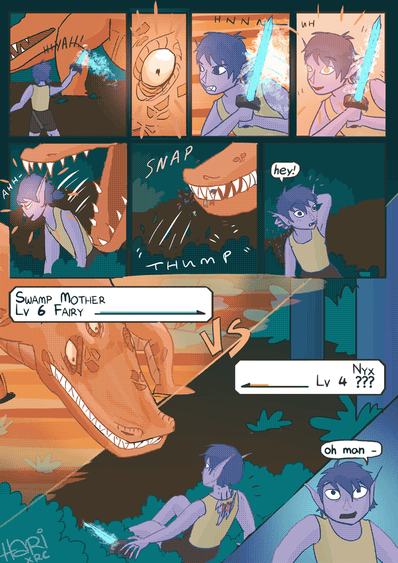 Fantasy adventure comics feat. Nyx, a kinda-magical loot-obsessed half-human half-something on a mum-saving quest that's mysteriously similar to a videogame. Ancient artefacts of great power, useless sidekicks, rad swords, a gathering darkness and sweet magic powers await.
