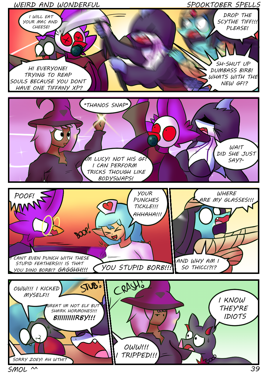Ohhh! Lucy was in last calendar! A bit of foreshadowing O.O and she knew being invited to this Halloween party that things would go oddly but of course the crew still mess everything up O.O lol,