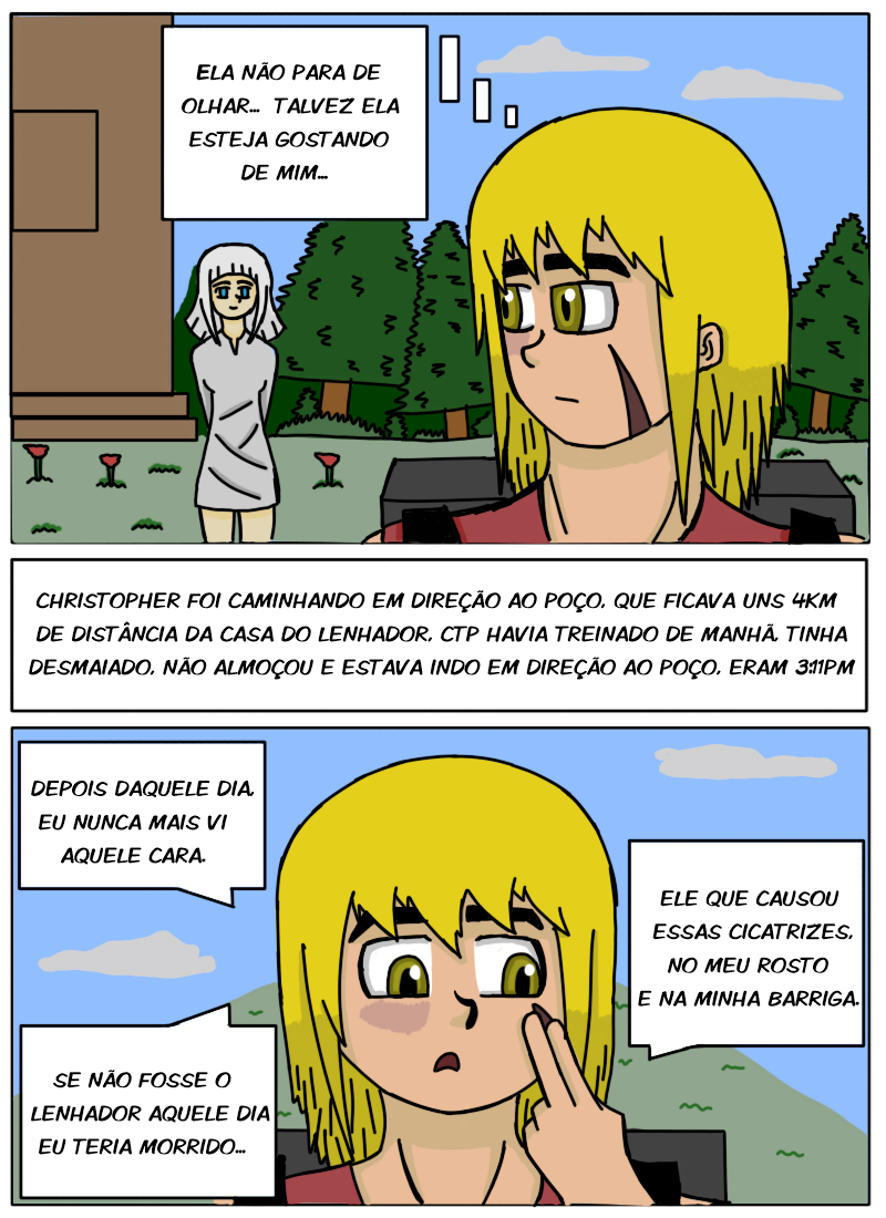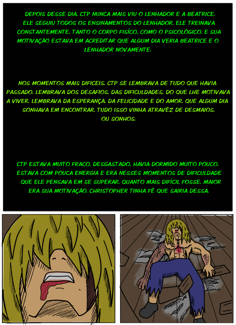 Nessa capitulo o CTP está inconsciente, e agora começa a se lembrar um pouco de seu passado... Bem,a história não é tão foda,com muitos plot twists,essa HQ é pra testar um pouco o meu traço,nada de muito impressionante.