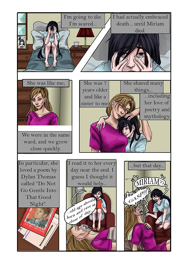 As she lay dying in her bed, Kaeldra decides to take what is left of her life into her own hands and runs from her hospital room, and those that love her. This ironically allows her to find a character that offers her a life she could have never imagined, and so much more. Monster-of-the-week style Updates weekly.