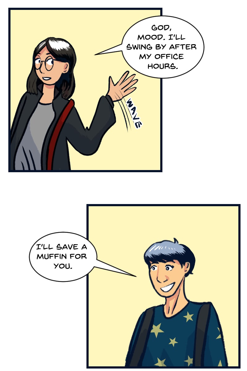 Part webcomic, part Social Media Storytelling: one sad cynical boy who does Not believe in love learns to Feel Emotions again after a chance encounter with a well intentioned and excitable Nerd (who is a grad student in medieval studies, hence that aesthetic influence.)