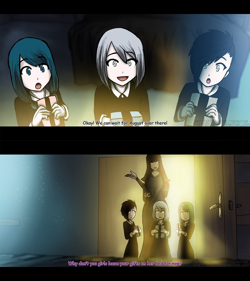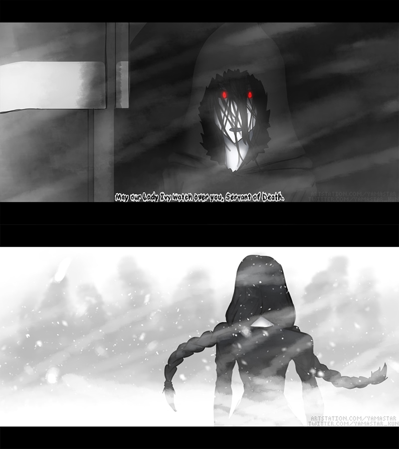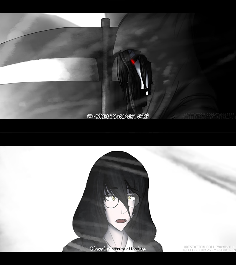 August, a Servant of Death, wakes up to a voice calling her name. She knows what she must do and must do it alone. She leaves the Sanctuary to set out on her journey. However her sudden departure was on a special day which leaves everyone less shocked.