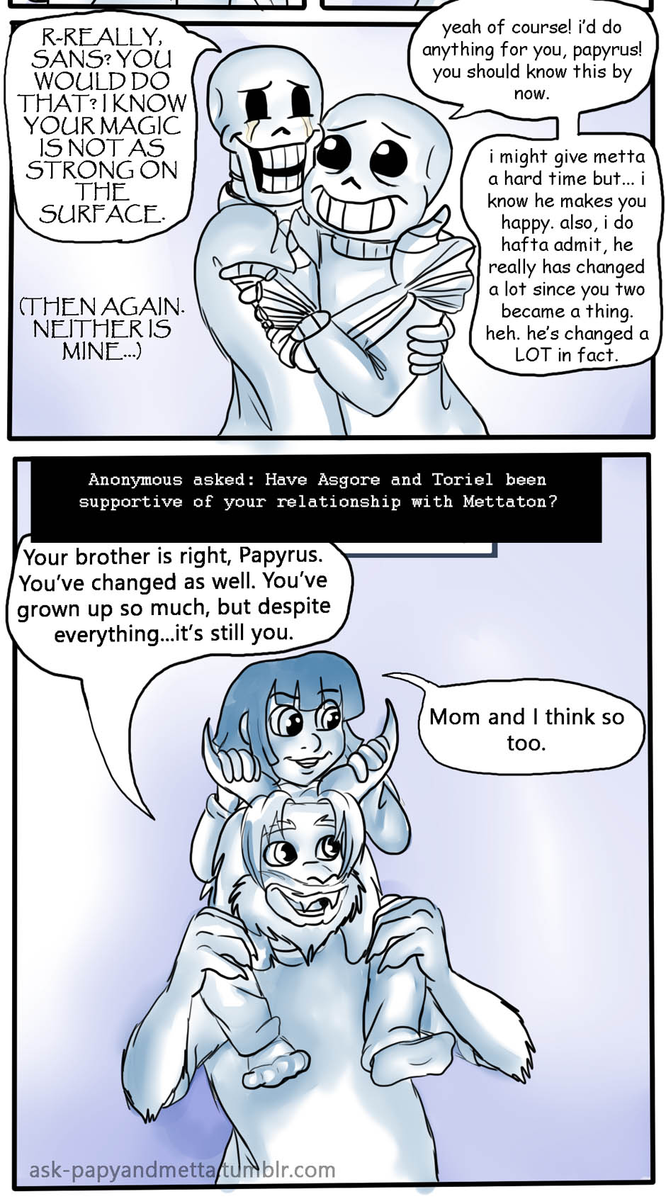 It's been a few years since the barrier was broken and many monsters have moved to the surface. Moving to the surface hasn’t exactly been easy for either Papyrus and Mettaton, and with all the changes, comes more challenges, drama, romance, and angst. It’s not all bad though! They’ve of course got each other, as well as their family and friends to help keep them determined.
