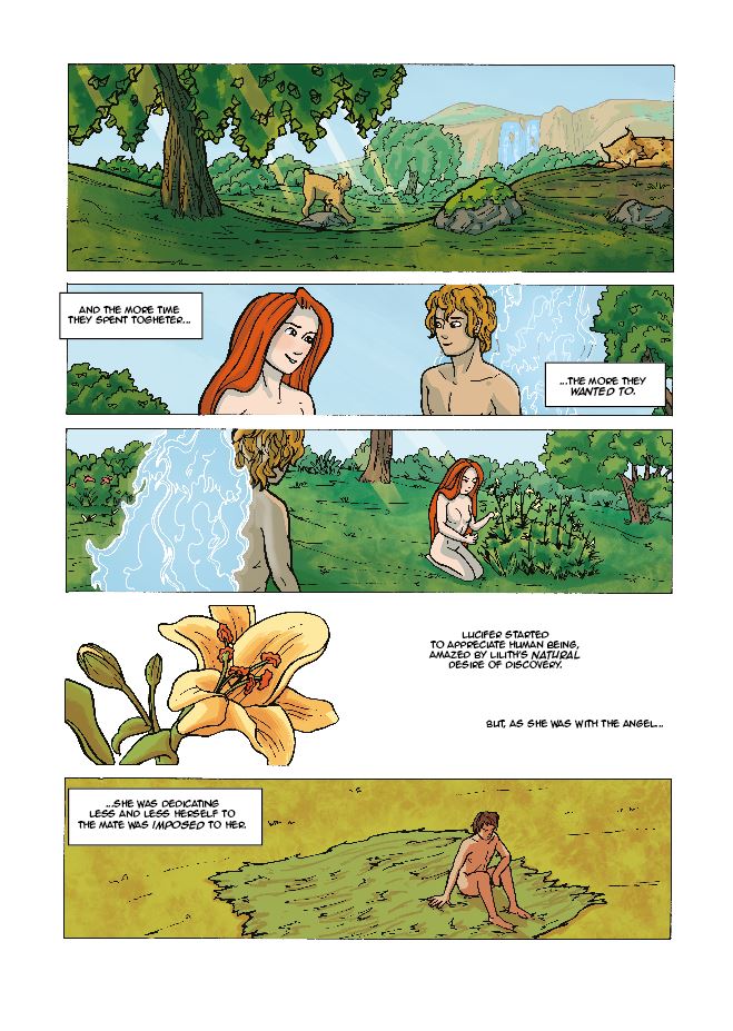 "Lilith is the very first woman. Bored by her mate Adam, she befriends the Angel protector of the Eden: Lucifer. But their bond is forbidden and impossibile, and Lilith will decide not only her own fate, but also the fate of two races..."