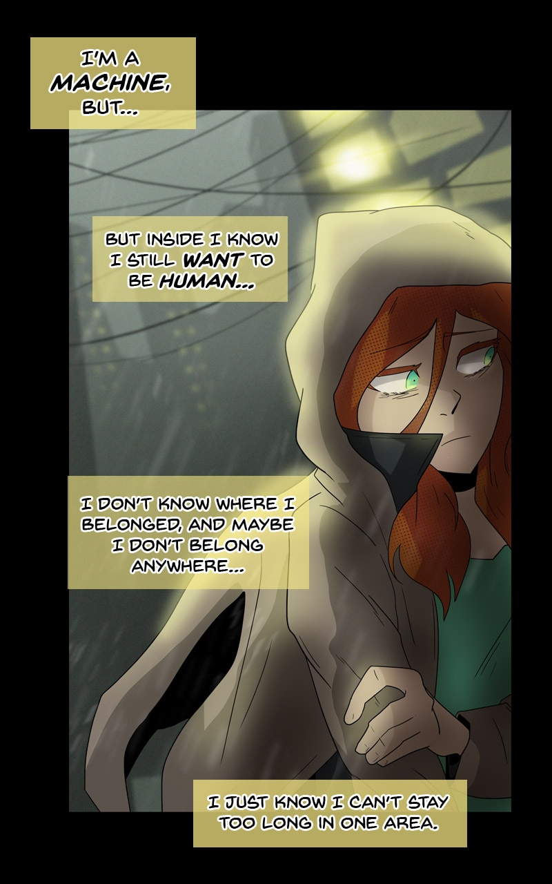 150 years after the Nuclear War, Echo and Niall are small remains of all human kind. In a new age of exploiting the use of AI to "replace and enhance" the human race, Echo and Niall must fight the empire "H.O.P.E." to regain what is left of humanity, as well as survive the H.O.P.E. Circus of Elite Machines, and the human-hunting ARCHANGELS. Updates every 7th and 21st!