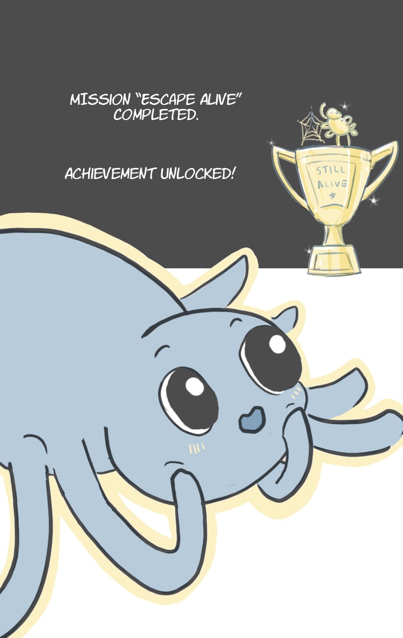 T_T Didn't get to upload early (or on time) this past weekend, but on the upside, this concludes the spider arc for this story. Thanks for reading! :3 Edit: Re-uploaded images -- didn't realize they weren't saving at the right size. :P