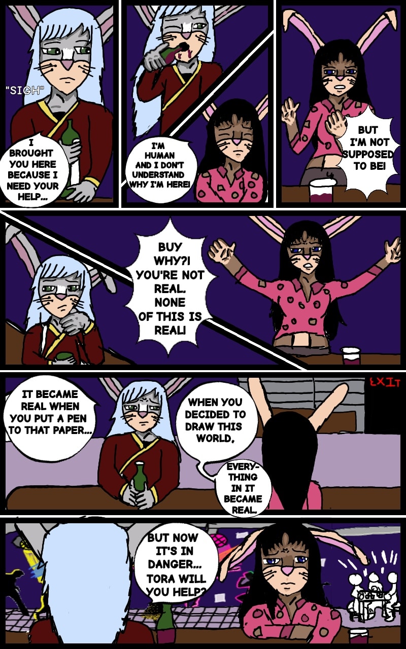 Tora is a struggling manga artist. She works as a simple office worker and on top of everything her boss is her boyfriend. What happens when she's magically transported into the comic book world she has been drawing? Now in order to return home; Tora must help Shika save his world from the evil "masked man" and find all of her book pages. But will she complete her mission? Or will she die and never be able to return back to her world.